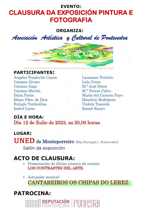 Clausura da exposición de Pintura e fotografía que organizou a Asociación Artística y Cultural de Pontevedra. Según la responsable de la exposición, pasarón más de 3.000 personas para ver los cuadros.