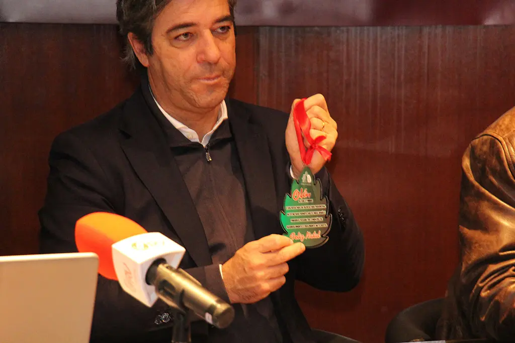 O presidente da Câmara, João Manuel Esteves, exibe pinheiro decorativo.