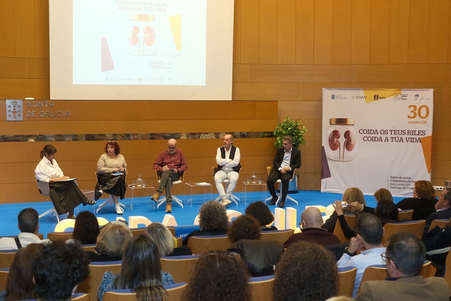 A Consellería de Sanidade, xunto con Otsuka Pharmaceutical, a Sociedade Galega de Nefroloxía (SGAN), Alcer Galicia e AGAL, reuniu en Santiago a profesionais, pacientes e representantes institucionais no acto “Coida os teus riles, coida a túa vida”, un encontro pioneiro que marca o inicio do primeiro programa autonómico de cribado de saúde renal en España.