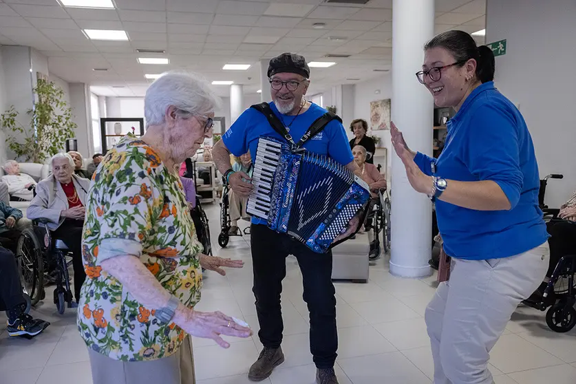 A través de la metodología de Músicos por la Salud y atendiendo al ciclo de vida del paciente, se interactúa con el sonido, el ritmo y la manera de cantar de músicos profesionales que se apoyan en instrumentos musicales para favorecer la mejora de la salud mental, las relaciones interpersonales, la comunicación con el entorno y la cohesión social del colectivo de personas residentes.