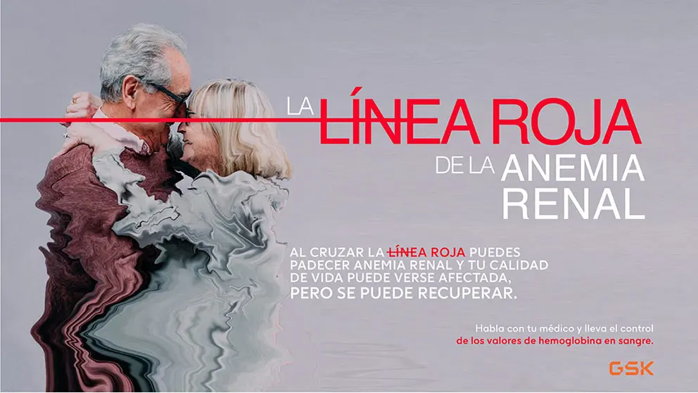 Más de siete millones de personas en España viven con Enfermedad Renal Crónica (ERC)2. De ellas, una de cada cinco presenta anemia renal3, una complicación frecuente de esta patología que empeora a medida que aumenta el deterioro de la función renal. Frente a este problema poco conocido, GSK ha puesto en marcha la campaña “La línea roja de la anemia renal”, con el objetivo de concienciar sobre las implicaciones e impacto que supone para los pacientes con ERC cruzar esta “línea roja” que puede provocarles la anemia renal y, por tanto, afectar a su calidad de vida. Para ello, ha incluido en su portal dirigido a pacientes y cuidadores contenidos específicos para generar mayor conocimiento sobre la misma.