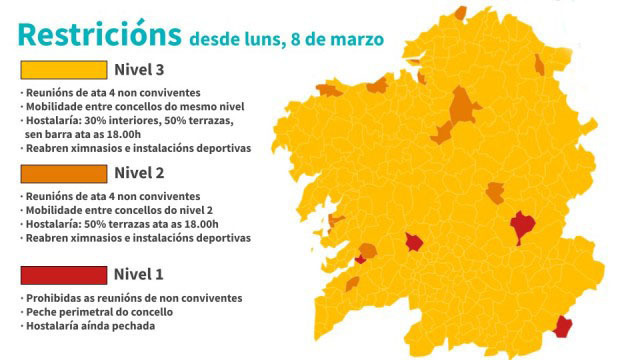 En los restantes ayuntamientos gallegos regirán las medidas del nivel medio.