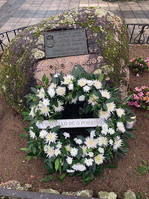 Coa colocación dunha coroa de dalias brancas e loureiro no cemiterio municipal, o Concello do Porriño comezou os actos do 'Ano Arquitecto Antonio Palacios' coa ocasión do 75 aniversario do seu pasamento que se cumpre hoxe o 27 de outubro.