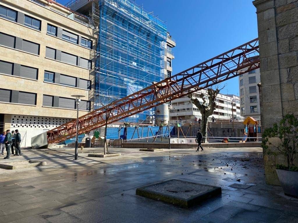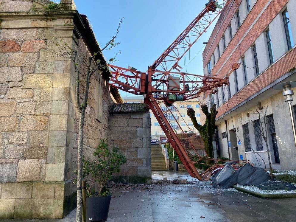 guindastre tamén ocasionou danos nun muro de peche do Hotel Parque.