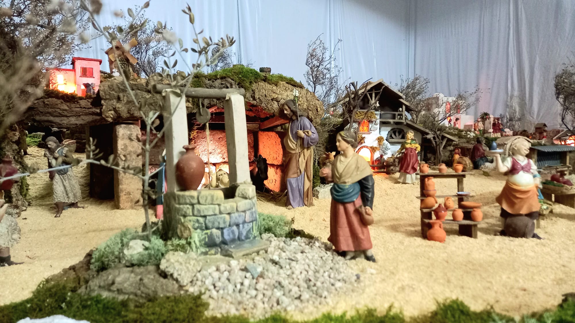 A magnitude do belén sorprende desde o primeiro momento. Ocupa unha superficie de 25 metros cadrados e conta con máis de 300 figuriñas artesanais, colocadas con minuciosidade para recrear escenas cheas de vida. As casiñas iluminadas, os muiños en movemento, as fontes, un río con auga natural e a música ambiente conforman un conxunto envolvente que transporta o visitante a outro tempo, convidándoo a deter o paso e observar con calma cada recuncho.
