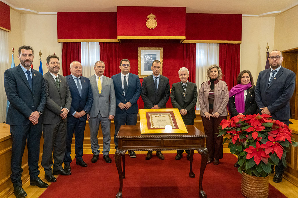 Tras a súa intervención o alcalde impuña a medalla de ouro ao bispo da diocese, e lle facía entrega do diploma e da acta plenaria deste recoñecemento.