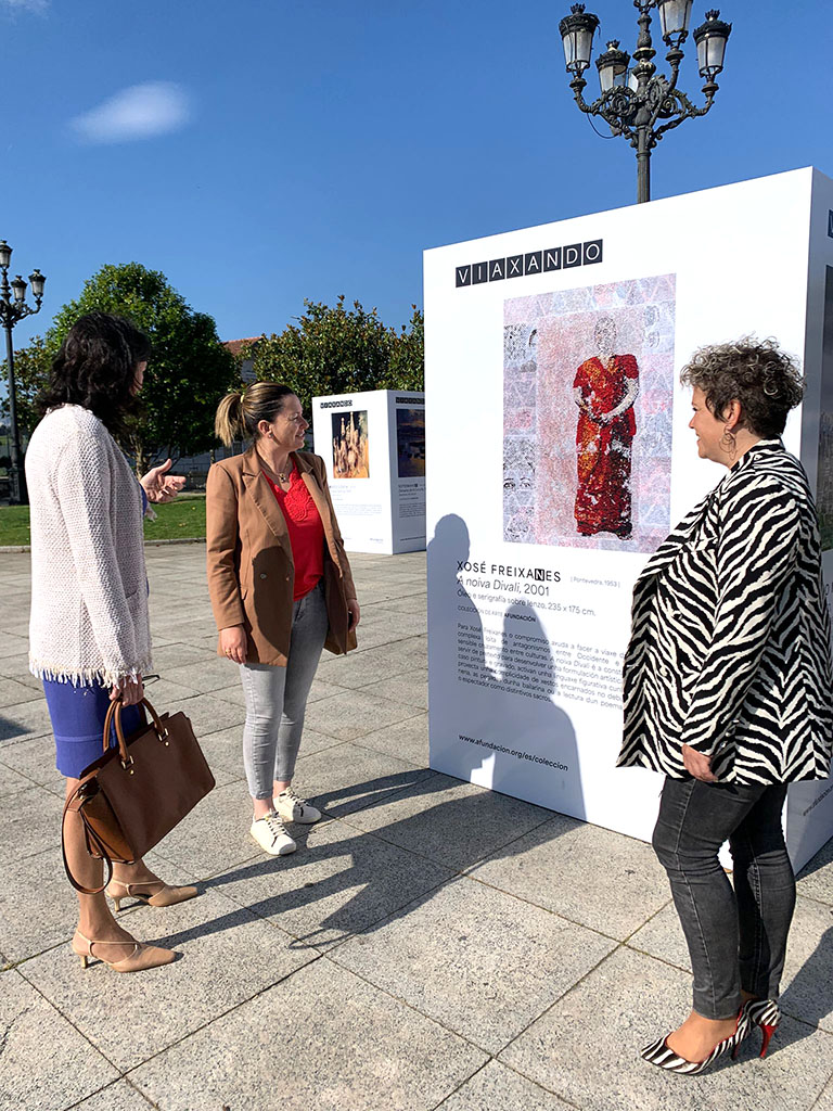 Afundación presentou esta mañá en Salvaterra de Miño a súa nova aposta pola divulgación das coleccións ABANCA e Afundación, unha mostra de rúa que se presenta en Salvaterra de Miño gracias á colaboración entre Afundación, ABANCA e o Concello da localidade. A exposición de rúa «Viaxando. Coleccións de Arte Afundación e ABANCA» se atopa ata o próximo 11 de xuño na Praza do Concello. Ao acto de presentación asistiron a alcaldesa de Salvaterra de Miño, Marta Valcárcel; o coordinador de banca institucional de ABANCA en Pontevedra, José L. Romero; a directora da oficina de ABANCA en Salvaterra de Miño, M.ª Ángeles Palacios; e a coordinadora adxunta da Área de Cultura de Afundación, Paloma Vela.