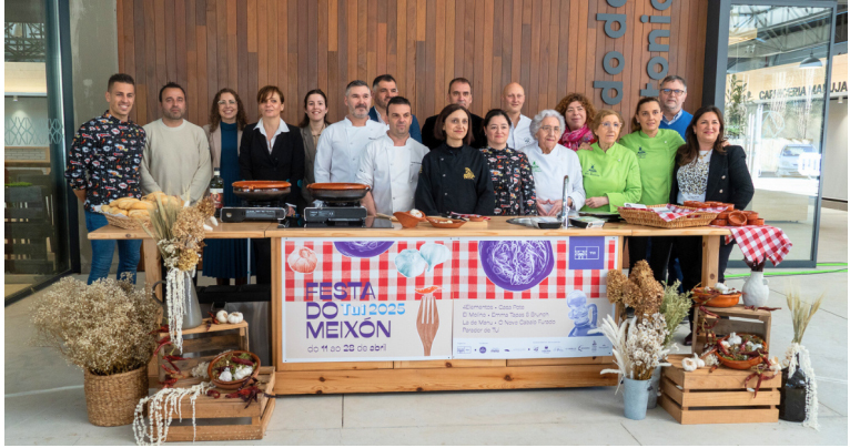 A Festa do Meixón comeza este venres e permitirá degustar este manxar do Miño ata o 28 de abril en sete restaurantes de Tui: 4Elementos, Casa Pote, El Molino, Emma Tapas & Brunch, La de Manu, O Novo Cabalo Furado e o Parador de Tui, cun prezo de 80 € previa reserva. A presentación contou coa colaboración da adega tudense Quiñóns da Insua.