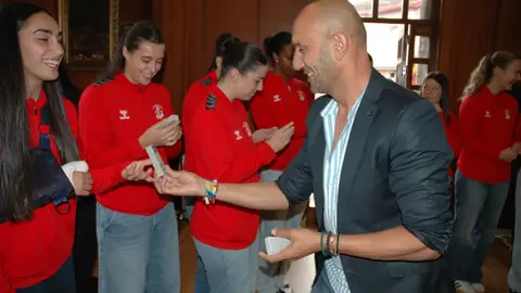 El balcón de la Casa Consistorial de O Porriño fue el lugar donde se dieron cita las veinte integrantes del equipo femenino de División de Honor del club.