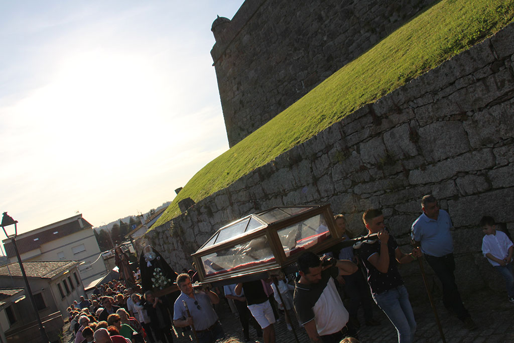 La procesión del Santo Entierro, con el Cristo en la urna –una réplica del que está en el altar mayor-, más la Virgen Dolorosa de Tortoreos, As Neves, y el san Juan apóstol de Pesqueiras rodearon el recinto amurallado, con las autoridades municipales –la alcaldesa de Salvaterra, Marta Valcárcel y los concejales Manuel Andrés Acuña y Ernesto Groba- y la banda municipal de Salvaterra al completo, con su director al frente, Daniel Gregores.