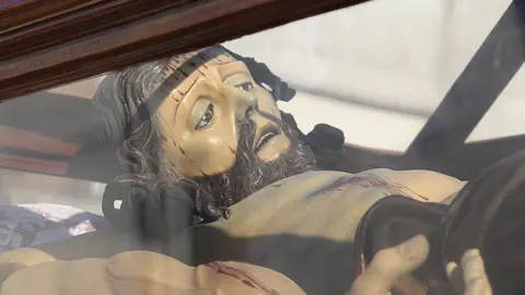 Se trata de un Cristo vivo, articulado, del que, para evitar su deterioro al desmontarlo para meterlo en la urna, en ocasiones como la Semana Santa, se encargó, hace unos años una réplica para este fin y para la veneración de los fieles.