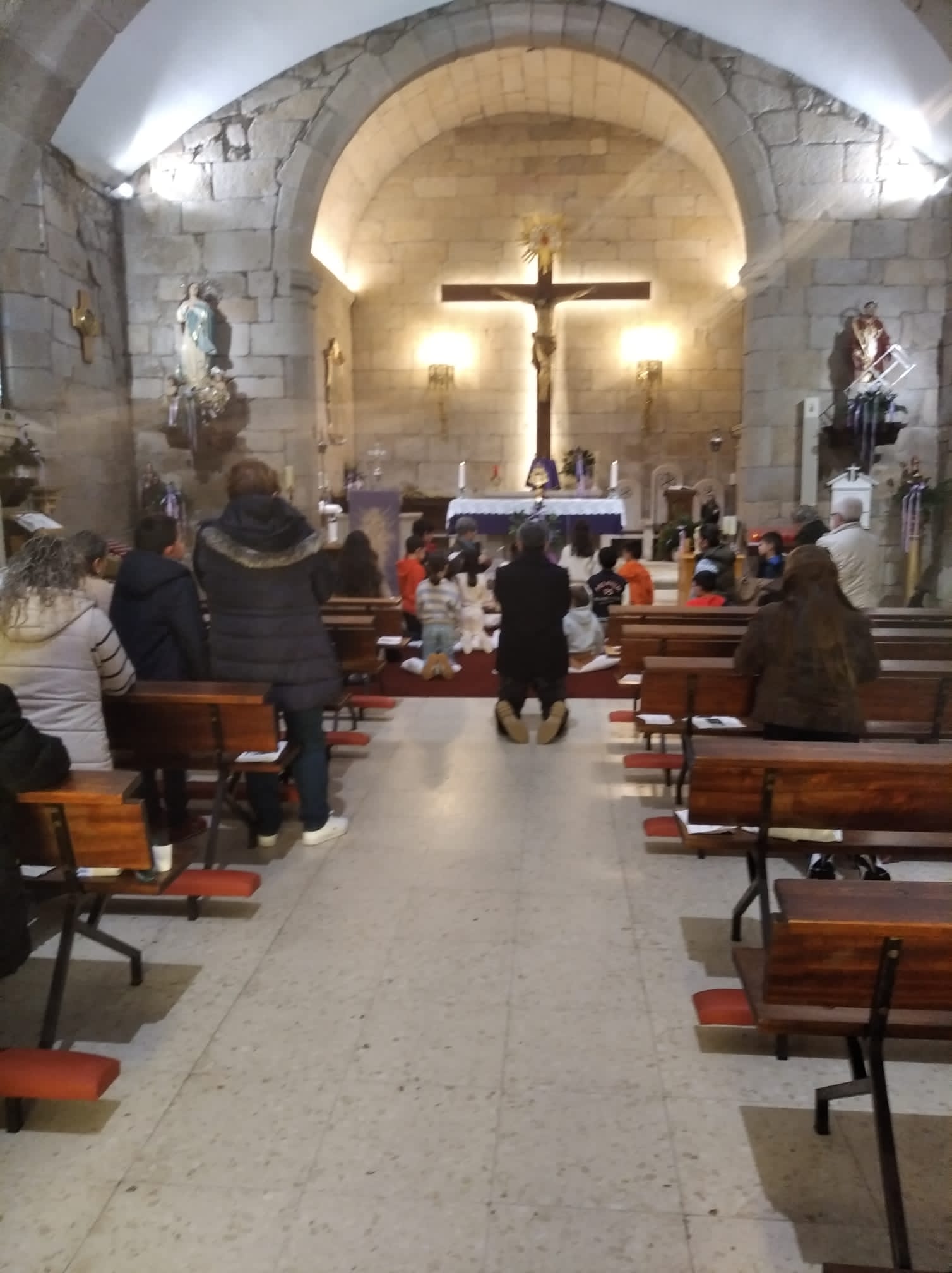 La parroquia de san Lourenzo de Salvaterra se llenó de luz y alegría ayer durante una especial Adoración al Santísimo Sacramento diseñada para acercar a los más pequeños a la fe. Alrededor de 30 niños, acompañados en su mayoría por sus padres, participaron en este encuentro de 45 minutos que buscó crear un ambiente informal y cercano para ellos.