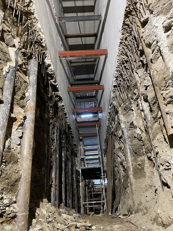 Algunos de los principales trabajos que se continúan acometiendo durante este verano están relacionados con la excavación del aparcamiento. Así, por ejemplo, este mismo mes se finalizó un túnel de conexión de los ascensores de la torre con el aparcamiento, en el que fue necesario emplear una minipala, dadas las reducidas dimensiones del espacio, para picar más de 800 metros cúbicos de material.