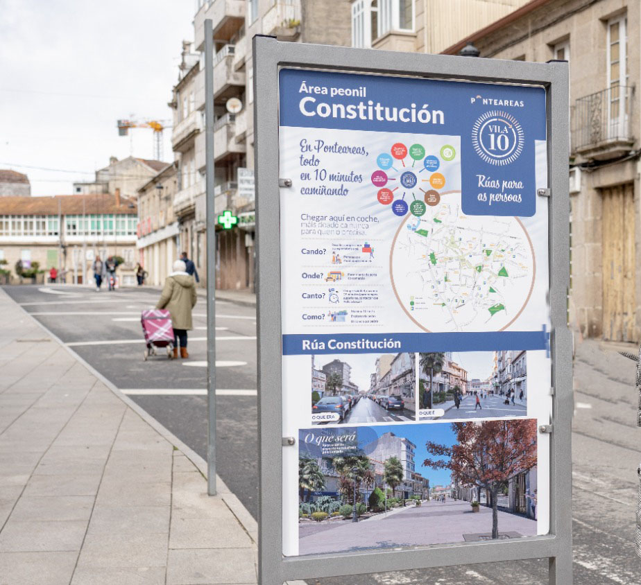 O Concello de Ponteareas vén de instalar unha decena de paneis informativos nas principais áreas peonís do centro urbano que inclúen datos e información dos tempos de percorridos urbanos a pé, das áreas peonís e parques públicos e das zonas de aparcamento. Tamén se recollen e exhiben imaxes comparativas da situación, anterior e futura das rúas peonís. Por último, os paneis promocionan o comercio local e tradicional lembrando as súas vantaxes.