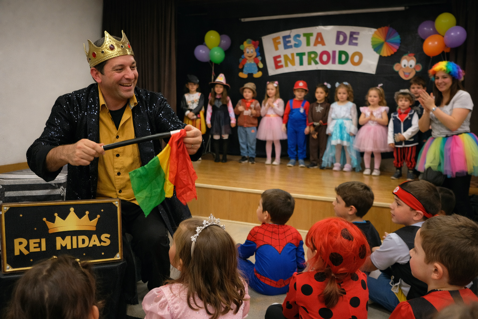 A cita arrancará cunha presentación de todos os nenos e nenas que acudan disfrazados, nunha benvida pensada para poñer en valor a creatividade e o espírito destas datas. A partir de aí, a tarde encherase de diversión coa proposta do Rei Midas, que combinará trucos de maxia, baile e diferentes xogos para manter a participación dos máis pequenos.
