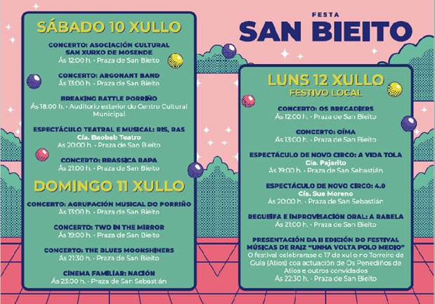 A Concellería de Festexos que dirixe Cami Moreira presenta a programación das festas de San Bieito 2021 que este ano aínda estarán axeitadas ás circunstancias sanitarias.