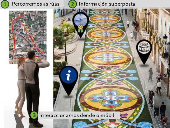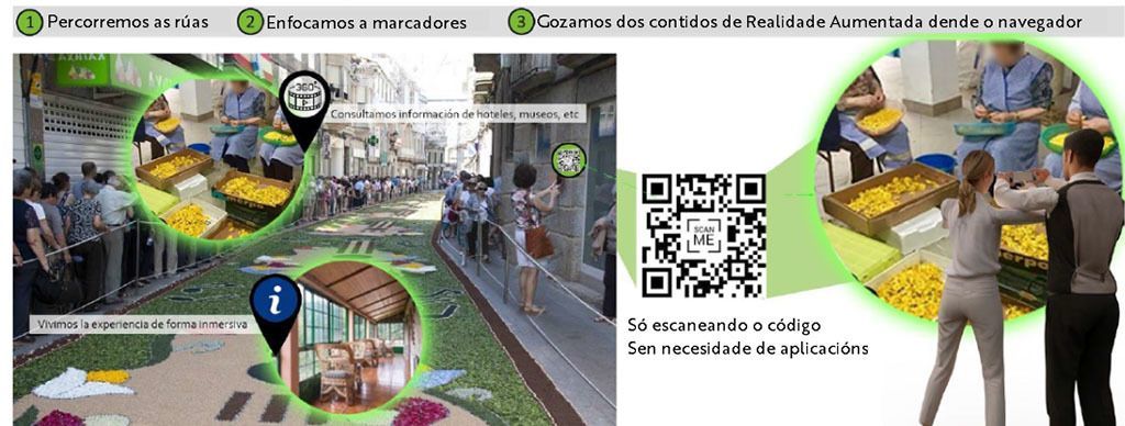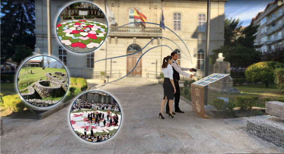 Directamente dende o seu teléfono móbil poderán enfocar ao panel e disporán de información relevante de acontecementos temporais e permanentes, permitíndolles escoller como queren vivir a oferta turística da vila. “Porase especial interese na festa do Corpus para que poida ser vivida todo o ano, utilizando material de arquivo de recursos dispoñibles no Concello para a súa posta en valor e poder mostrar algúns dos deseños florais dos pasados anos”, explicou Eva Gil.
