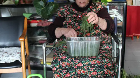 En el primer tramo de Reveriano Soutullo estaba esta tarde Teresa, de 91 años y con 55 años de experiencia como alfombrista. O en Elduayen-La Giralda, 'Chola', esto es Aurea, también cumplió ya los 91 o en el primer tramo de plaza Mayor, Paquita con 90.