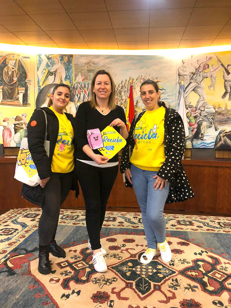 A nosas monitoras Eva e Lidia xa están con nos e hoxe visitarán todos os comercios da nosa vila explicarlles os beneficios do reciclaxe todo o que eles poden aportar.