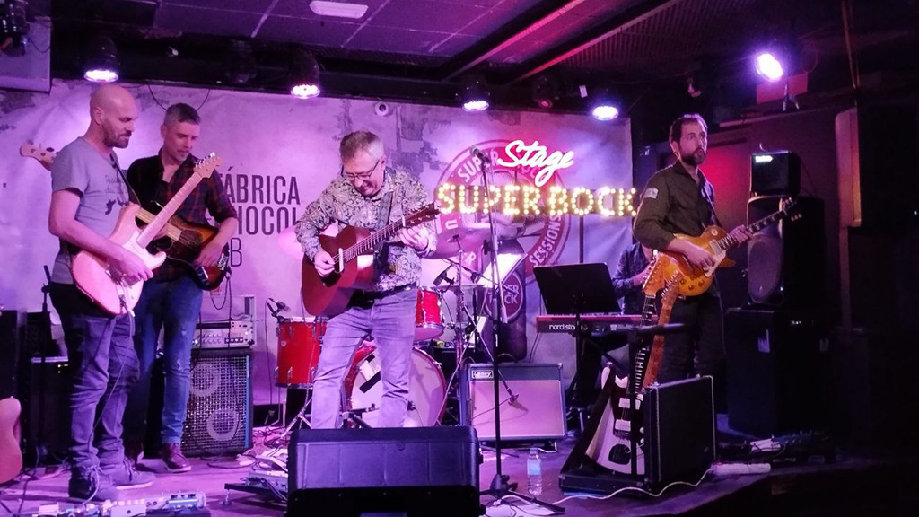 Seso estivo acompañado no escenario por unha banda formada por cinco músicos armados de dúas guitarras eléctricas, un baixo, un batería e mais un teclado. El mesmo alternou a guitarra eléctrica con outra acústica.
