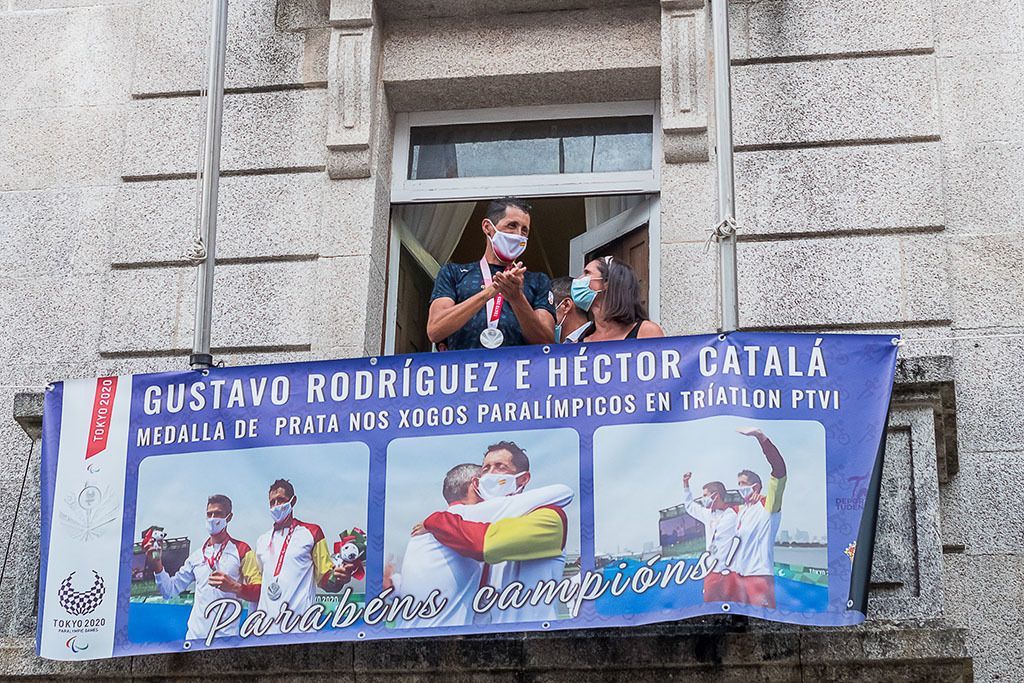 A corporación municipal de Tui recibía o mércores, no Salón de Plenos da Casa do Concello, ao deportista tudense Gustavo Rodríguez que o pasado sábado logrou a medalla de prata en Tríatlon coma guía de Héctor Catalá nos Xogos Paralímpicos de Toquio.