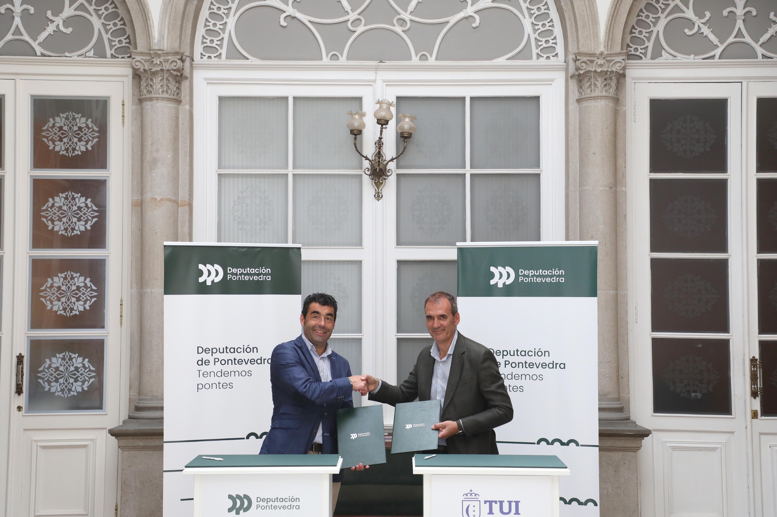 A Rúa Coruña de Tui será obxecto dunha reforma urbana integral grazas a un convenio de colaboración asinado hoxe entre o presidente da Deputación de Pontevedra, Luis López, e o alcalde de Tui, Enrique Cabaleiro. O acordo, que se enmarca no innovador Plan Extra do goberno provincial, mobilizará ata 950.000€ para este proxecto.
