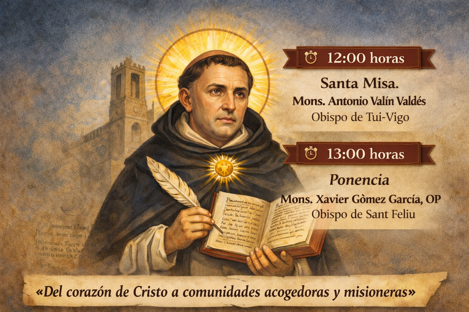 A continuación, a las 13:00 horas, en el salón de actos, tendrá lugar la ponencia titulada «Del corazón de Cristo a comunidades acogedoras y misioneras», a cargo del obispo de Sant Feliu de Llobregat, Mons. Xavier Gómez García, OP.