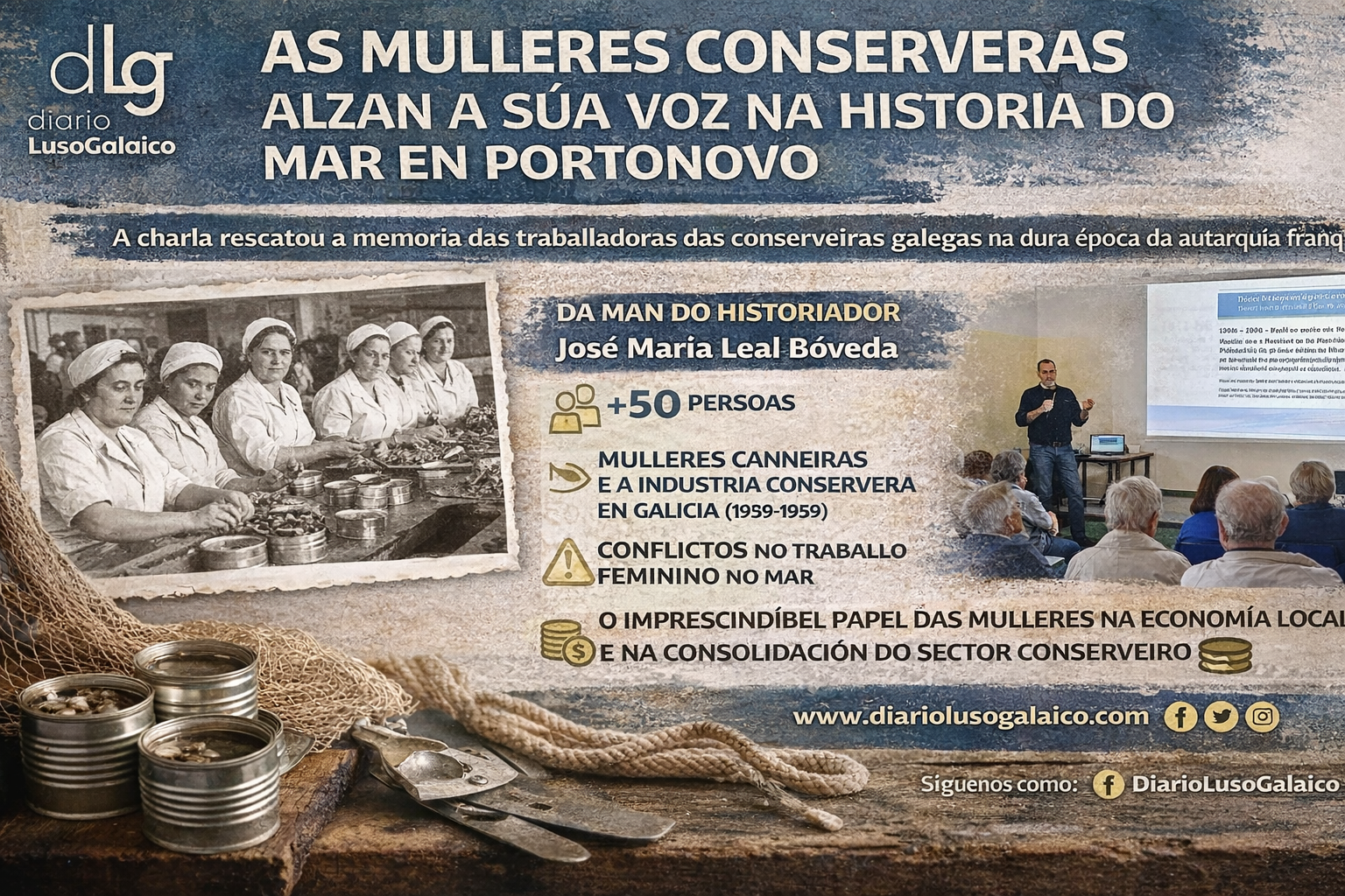 La Cofradía de Pescadores San Roque de Portonovo acogió la charla “Las Voces de las Mujeres Conserveras”, una ponencia que puso en valor el papel fundamental de las mujeres en el mundo marítimo gallego durante el siglo XX.