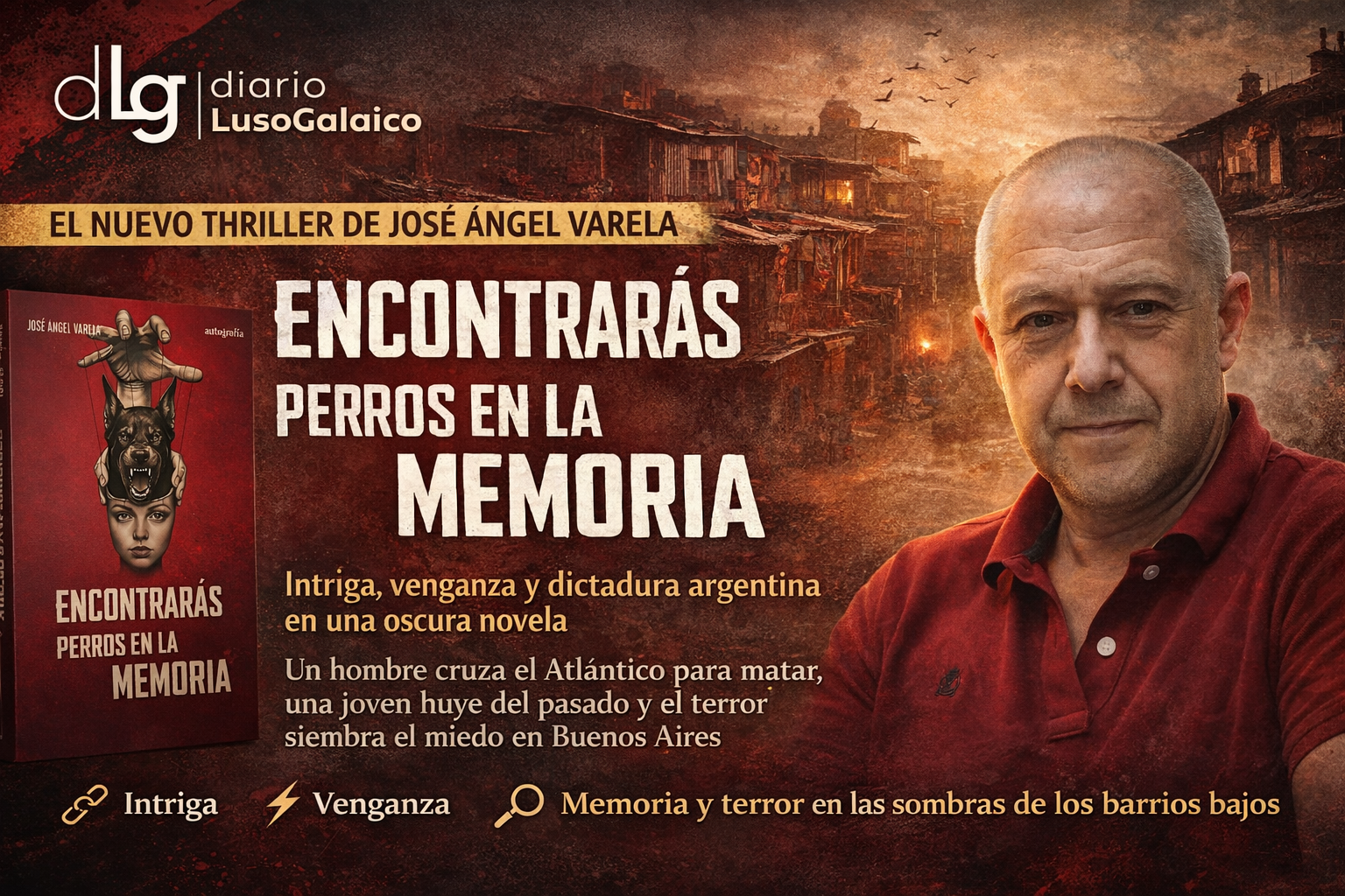 Un hombre viaja miles de kilómetros para matar, una joven huye de su pasado y una ciudad vive bajo la sombra del miedo. Con estos mimbres, Ángel Varela construye Encontrarás perros en la memoria, una novela de intriga que hunde sus raíces en la violencia y la memoria de la dictadura argentina.