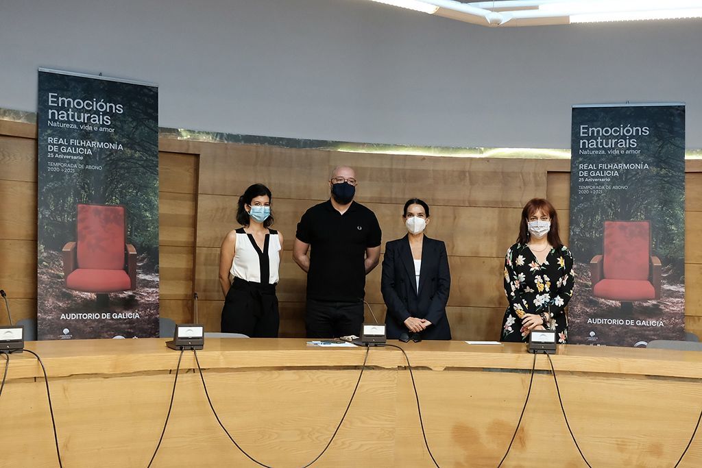 Na súa intervención, a xerente do Consorcio de Santiago, Belén Hernández, indicou que “levar a cabo esta temporada foi unha decisión complicada pero pensamos que despois de todo o tempo de incertidume precisabamos mantela polo noso público, para o que contamos co apoio do Concello de Santiago e do Auditorio de Galicia”. Pola súa parte, a directora técnica da RFG, Sabela García Fonte, declarou que “ante as circunstancias actuais, quixemos poñer diante a música como vehículo de transmisión de sentimentos”.