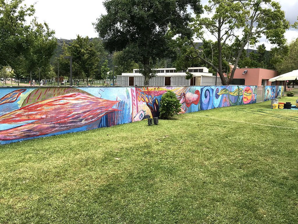 Integrada na candidatura “LowPlast–a arte de reduzir o plástico”, o artista Acácio de Carvalho realizou uma pintura mural com inspiração num jogo de elementos geométricos e animais do mundo marinho e dos Oceanos em geral. O objetivo? Alertar para a problemática da poluição ambiental em geral e, em particular, para o excesso do uso de plástico e consequente poluição dos oceanos.