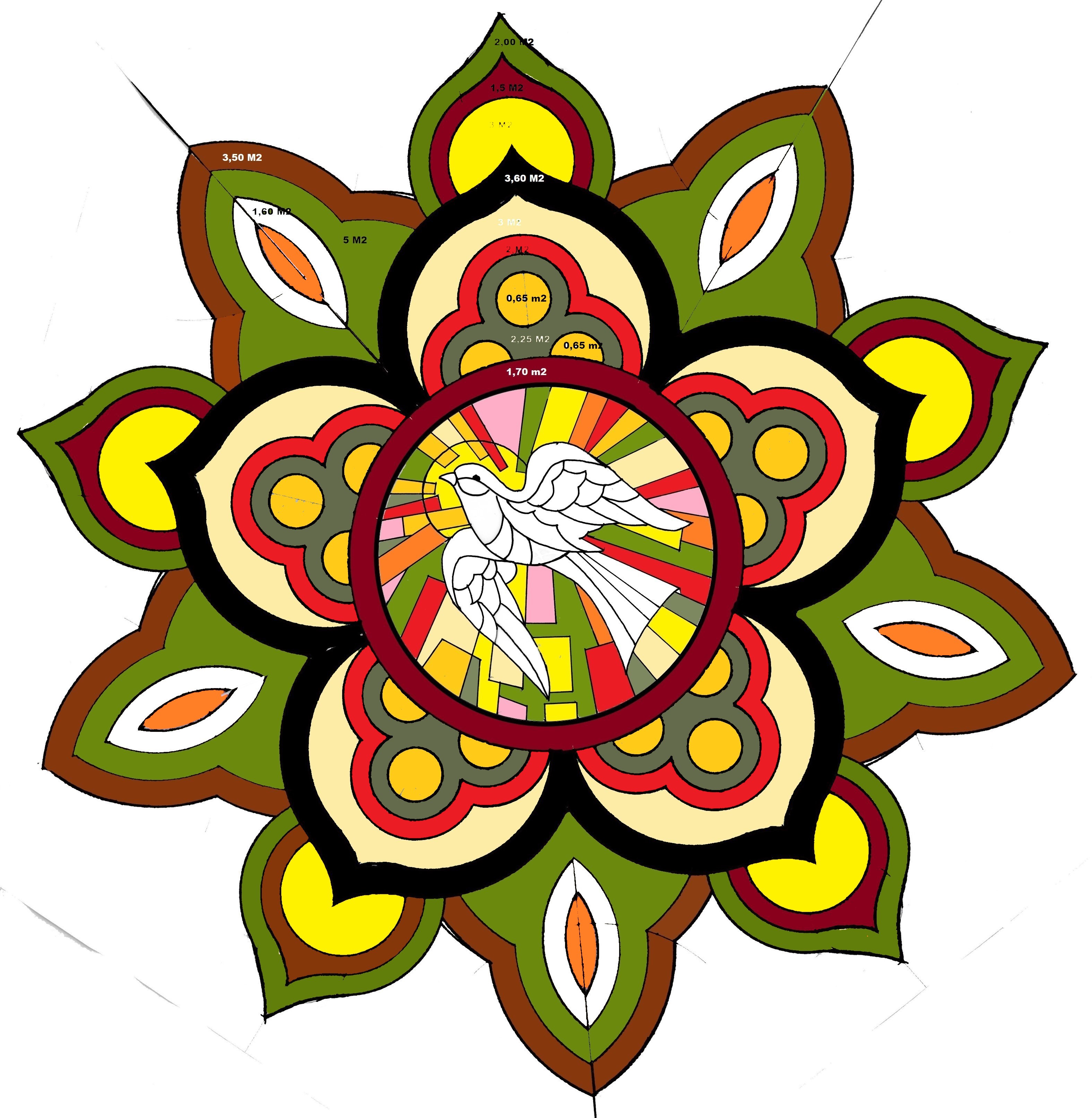 La alfombra, con una simbólica forma de pentagrama que alude a las cinco Cofradías y Hermandades ferrolanas con más de cuatro siglos de historia, tendrá un diámetro de ocho metros y ocupará una superficie de cincuenta metros cuadrados. El diseño central destacará la imagen de una Paloma inscrita en una vidriera multicolor. La paloma, símbolo litúrgico del Espíritu Santo, representa en este contexto el Cristo que se reencarna misteriosamente en la Eucaristía, símbolo de la Nueva Alianza.