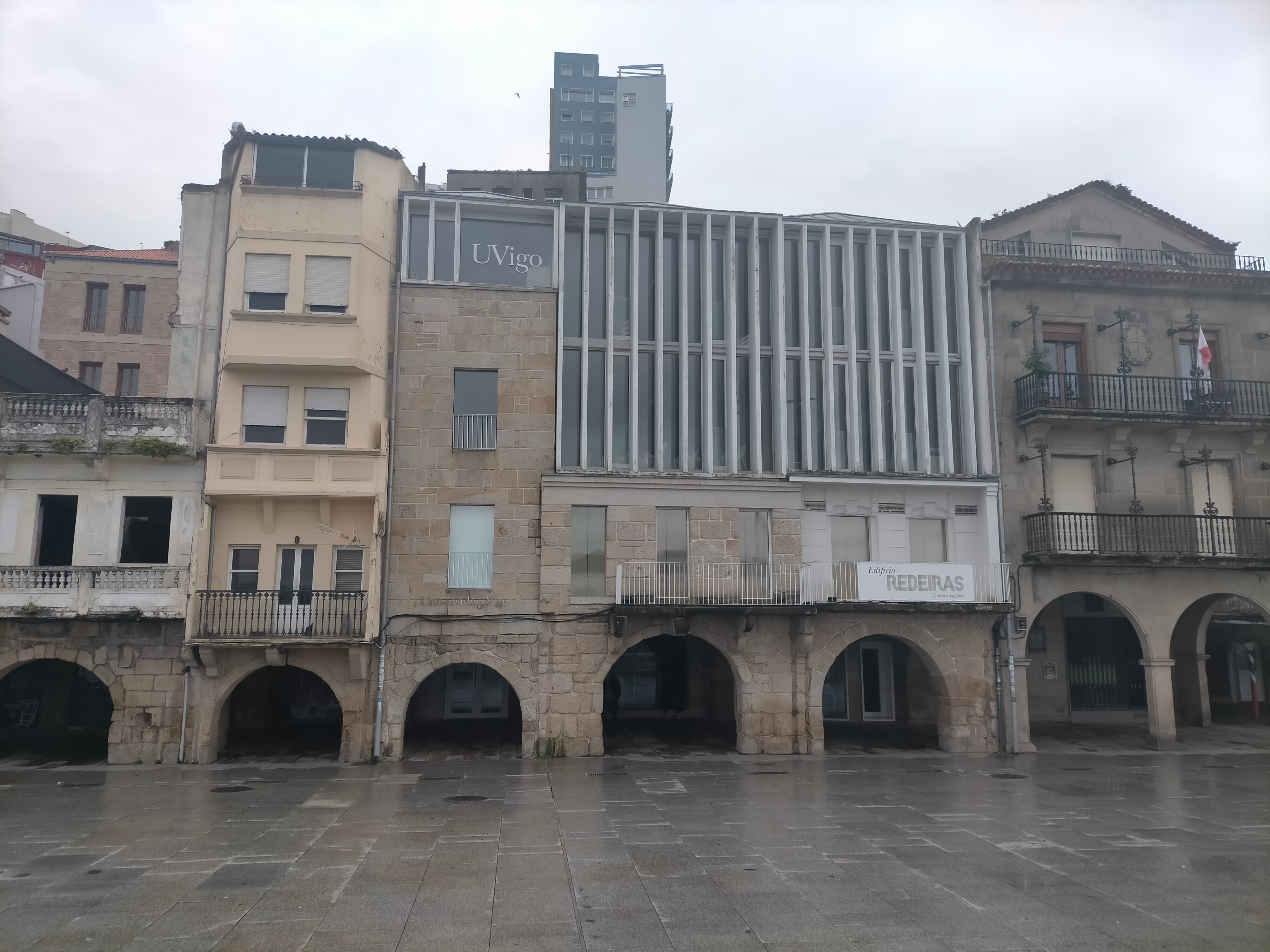 Un dos inmobles restaurados pertence á Universidade de Vigo, que o destina á súa sede institucional. A exposición inclúe planos e fotografías da intervención realizada.