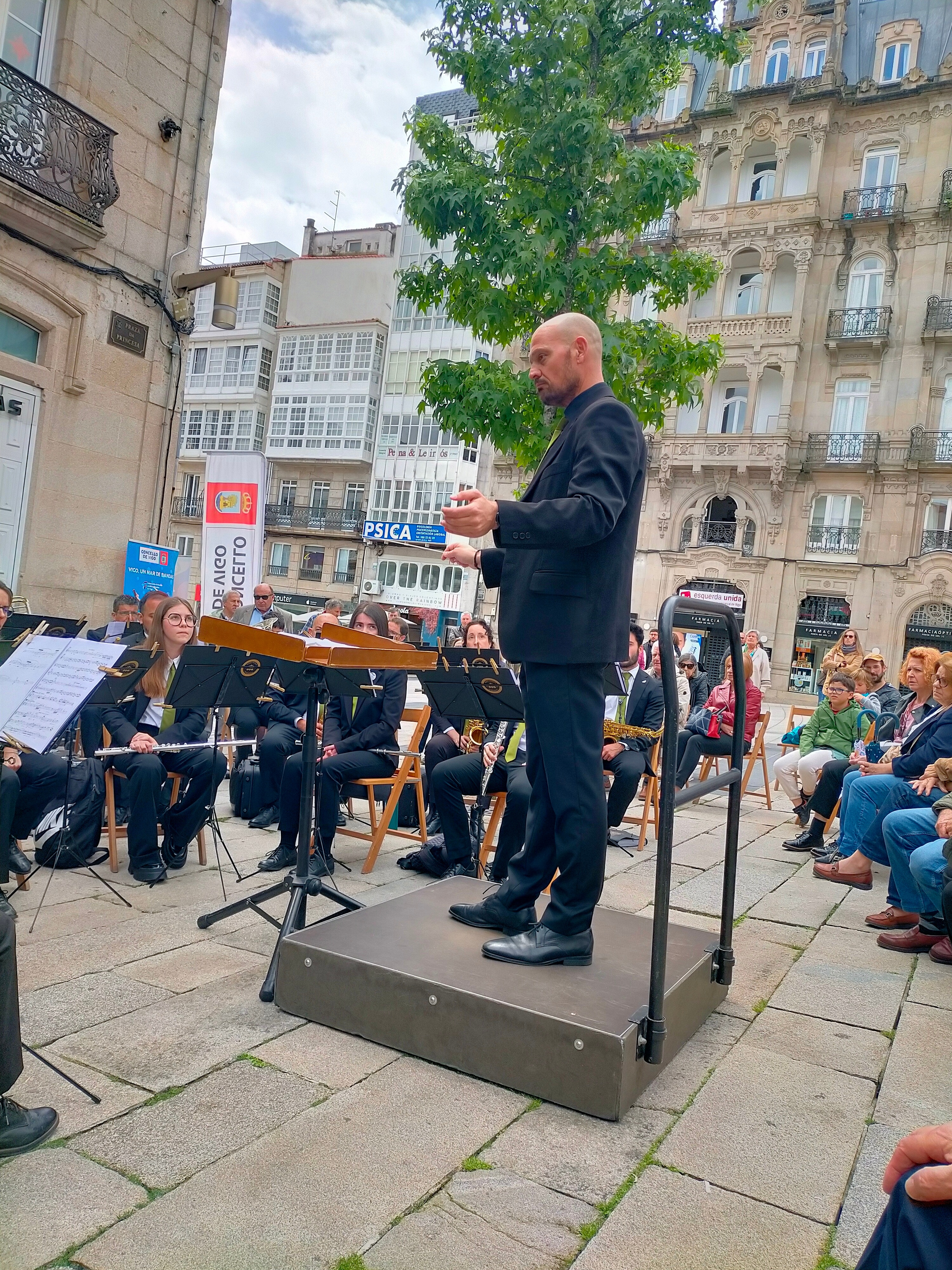 Ateneo Musical de Bembrive deleita na Praza da Princesa a pesar do mal tempo