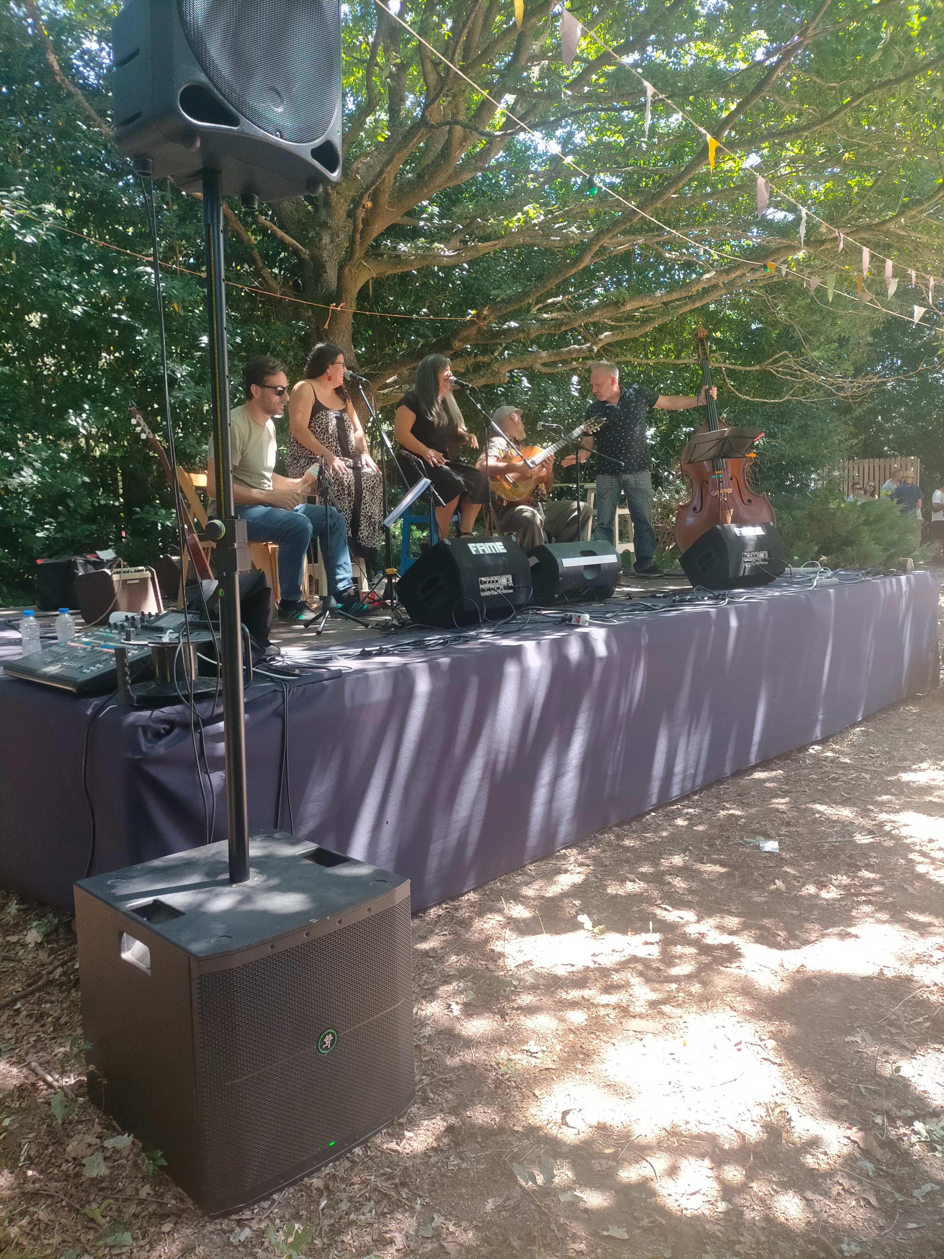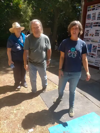 Na xornada de conmemoración do XI Aniversario, a sombra da Carballeira acolleu a Xulio Fontes, Mercedes Vázquez Saavedra e o seu inseparable Moncho, compartindo non só arte musical ao son de Tabernarias e As Singras da Arca, senón tamén momentos de confraternidade con empanada vexetal e, sobre todo, moita arte.
