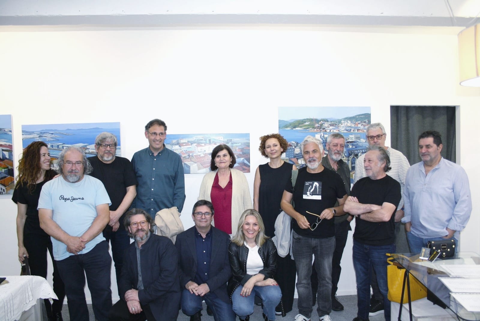 Una de las piezas centrales de la muestra es una panorámica dividida en cuatro cuadros que mira a la Ría, desde Bouzas hasta A Guía. Este formato panorámico, que ofrece una visión de 360 grados de distintas ciudades, se ha vuelto característico en las exposiciones de Cecilio Chaves.
