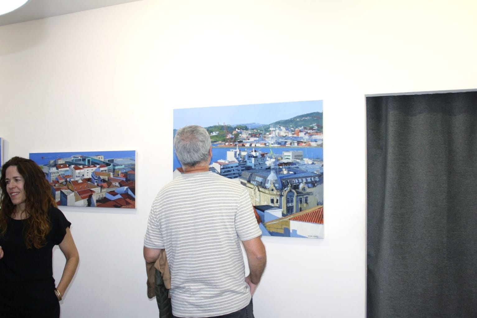 Una de las piezas centrales de la muestra es una panorámica dividida en cuatro cuadros que mira a la Ría, desde Bouzas hasta A Guía. Este formato panorámico, que ofrece una visión de 360 grados de distintas ciudades, se ha vuelto característico en las exposiciones de Cecilio Chaves.
