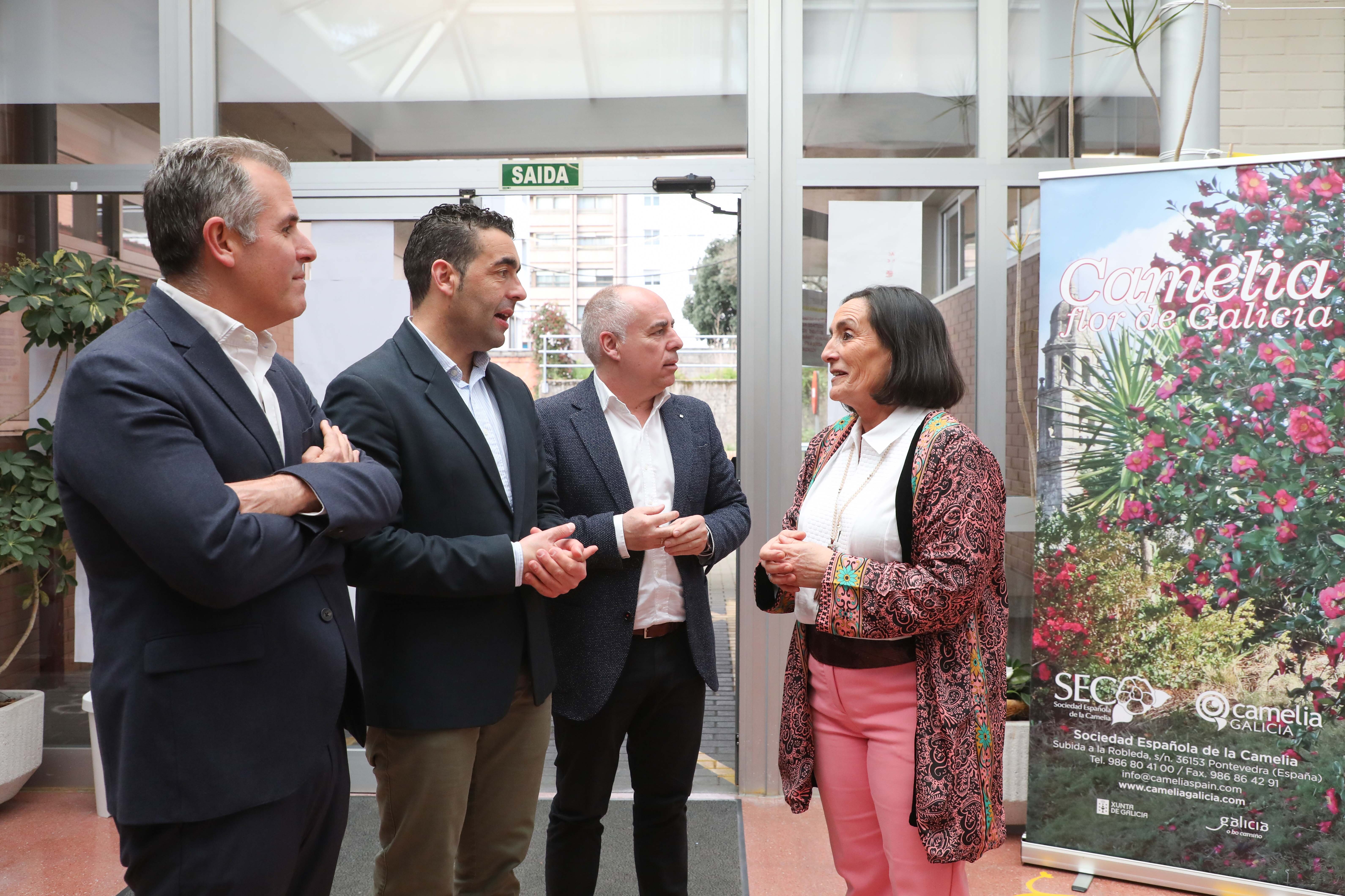 O presidente da Deputación de Pontevedra, Luis López, acompañado polo vicepresidente Rafa Domínguez e o deputado Javier Tourís, visitou a XXIII Exposición da Camelia organizada polo colexio de Educación Primaria Campolongo. O evento, que destaca a tradición da flor das Rías Baixas, contou coa presenza do mandatario provincial, quen percorreu os postos de exposición, asistiu a actuacións de música e poesía do alumnado e conversou cos estudantes sobre a orixe e funcións da camelia.