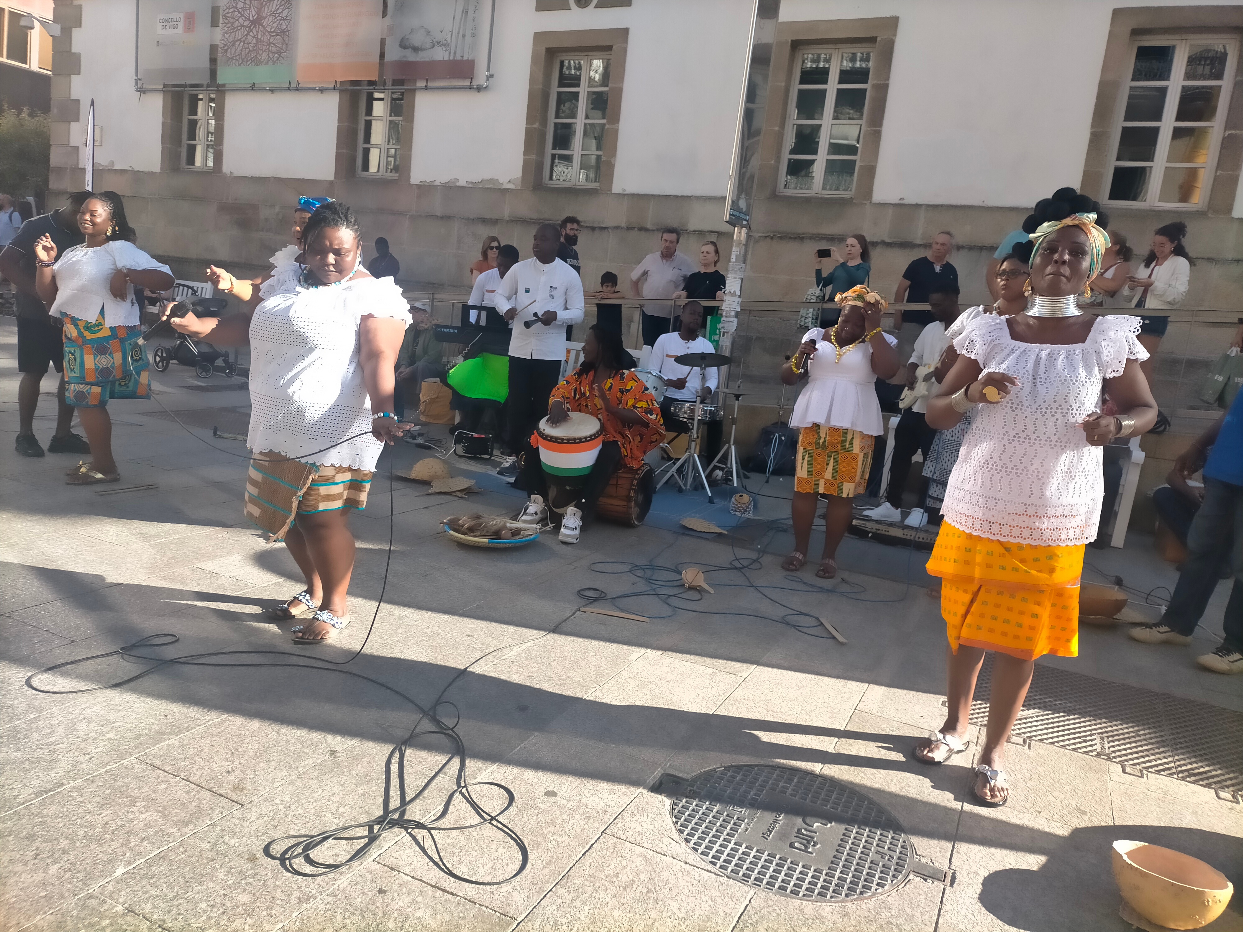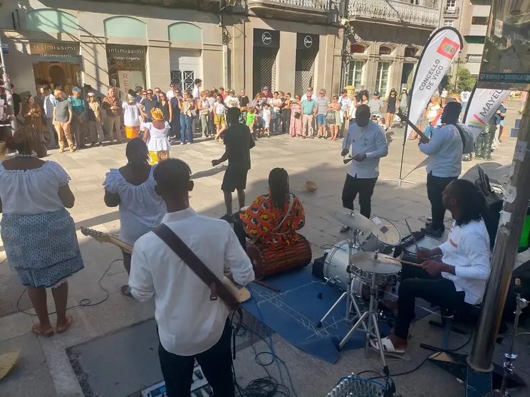 El Grupo Musical Eburnie, directamente desde Costa de Marfil, ha llegado a Vigo para llenar sus calles con los vibrantes ritmos y la rica cultura africana. El 26 de junio, frente al MARCO en la Calle del Príncipe, ofrecieron un energético concierto con 20 músicos, deleitando al público con música y baile al aire libre, y compartiendo su cultura a través de sus actuaciones llenas de vida y fe cristiana.