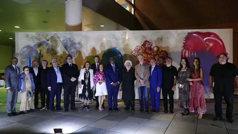 El escenario ha acogido también deseos en español, de la mano de la escritora y pedagoga Teonilda Madera. “En este espacio majestuoso que nos ofrece una vista espectacular de las nuevas torres que se han vuelto a levantar hacia el cielo después de aquel fatídico 11s”, dijo, todo contribuía a “que la obra pictórica que reposará en este lienzo emerja espléndidamente desde lo más sublime del alma del artista que lo está pintando”. “La inspiración poética, la melodía de cada instrumento musical, los movimientos armoniosos del bailarín y la visión de un mundo mejor están integradas en el universo pictórico que está plasmando el gran artista Cristóbal Gabarrón”, un mural que “representa el triunfo de la vida ante cualquier tragedia”, añadía en esta intervención que cerraba el acto, y en la que también defendió que “la fraternidad, creatividad y educación están por encima de cualquier acto terrorista. La obra, concluyó, “permanecerá en el lienzo y en nuestros corazones”. E invitó a decir al unísono “que en la gran manzana triunfa la vida, la creación artística y la educación”.