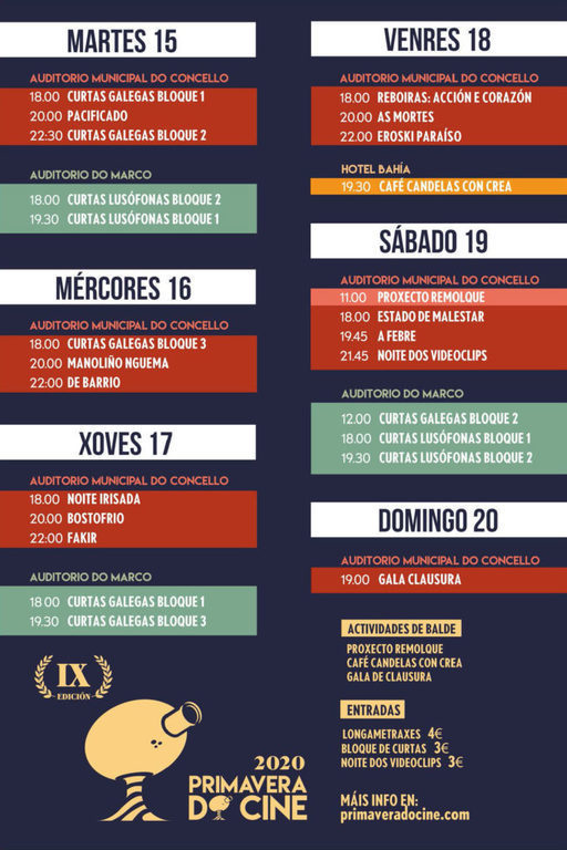 O Camões - Centro Cultural Português em Vigo apoia mais uma edição do festival de cinema 'Primavera do Cine', que, como sempre, dedicará um importante espaço à Lusofonia. O festival começa hoje, dia 15 de setembro, e decorrerá até ao dia 20 de setembro em vários locais da cidade de Vigo.