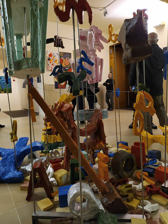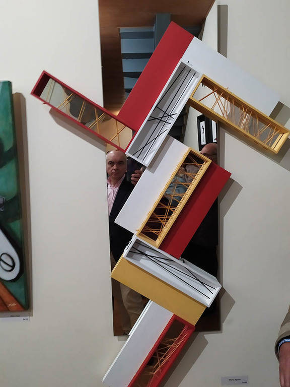 Los invitados fueron agasajados con una cena en la cafetería del auditorio. Después, en la entrada, a modo de plaza, con una instalación artística en el centro, habló el comisario de la exposición António João Aguiar, el alcalde y Nuno Soares, director de la Casa das Artes, que explicó a los invitados cómo discurriría el evento.