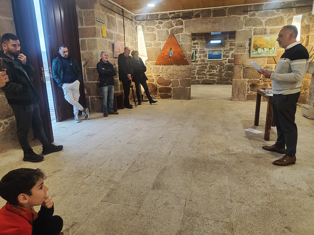 Agora chega o mesmo lugar, por onde circulaba unha antiga calzada romana que unía Bracara Augusta con Tui e Santiago, mesmo a carón da Igrexa de Santa Baia de Mos, onde chegou da man do Comisario de Exposicións, Manuel Estévez, para amosar un conxunto de obras, óleo sobre lenzo, en distintos formatos, entre eles 'Cigoñas', 'Gaviotas', 'Flamencos', 'Elvira e Esther', 'Corda con mexilóns', 'Praia de Cesantes', 'Castro de Santa Tegra' ou 'O Algarve portugués'.