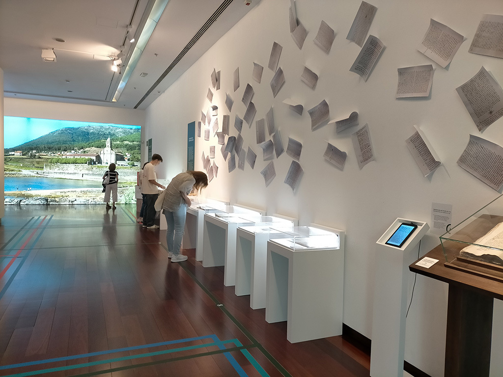 Un Mosteiro, un mar de historia(s), promovida por la Fundación Bretal, el Mosteiro de Oia, con el apoyo de Afundación, la Obra Social de Abanca y la Xunta de Galicia, muestra a los visitantes la cara más desconocida del histórico edificio, como apuntó la comisaria de la exposición, Sarah Barbará. Ella destacó que el cenobio «es el protagonista absoluto de un mar de historias que se entrelazan a lo largo de 875 años y que son el hilo argumental de una apasionante exposición».