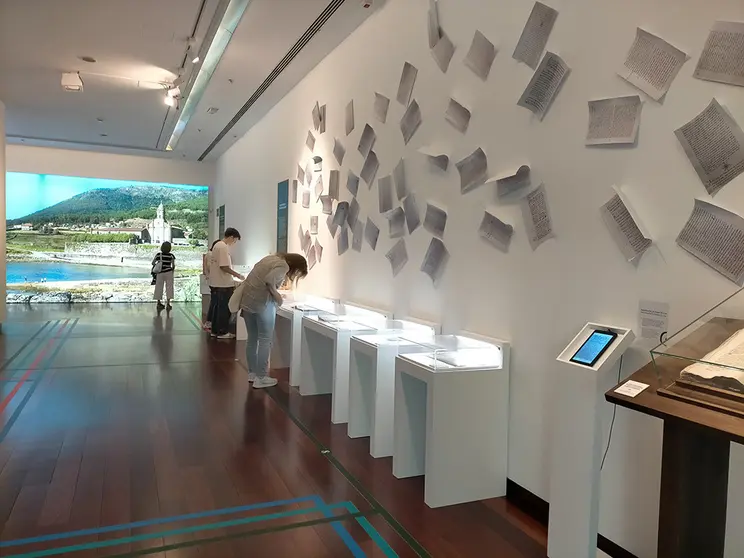 Un Mosteiro, un mar de historia(s), promovida por la Fundación Bretal, el Mosteiro de Oia, con el apoyo de Afundación, la Obra Social de Abanca y la Xunta de Galicia, muestra a los visitantes la cara más desconocida del histórico edificio, como apuntó la comisaria de la exposición, Sarah Barbará. Ella destacó que el cenobio «es el protagonista absoluto de un mar de historias que se entrelazan a lo largo de 875 años y que son el hilo argumental de una apasionante exposición».