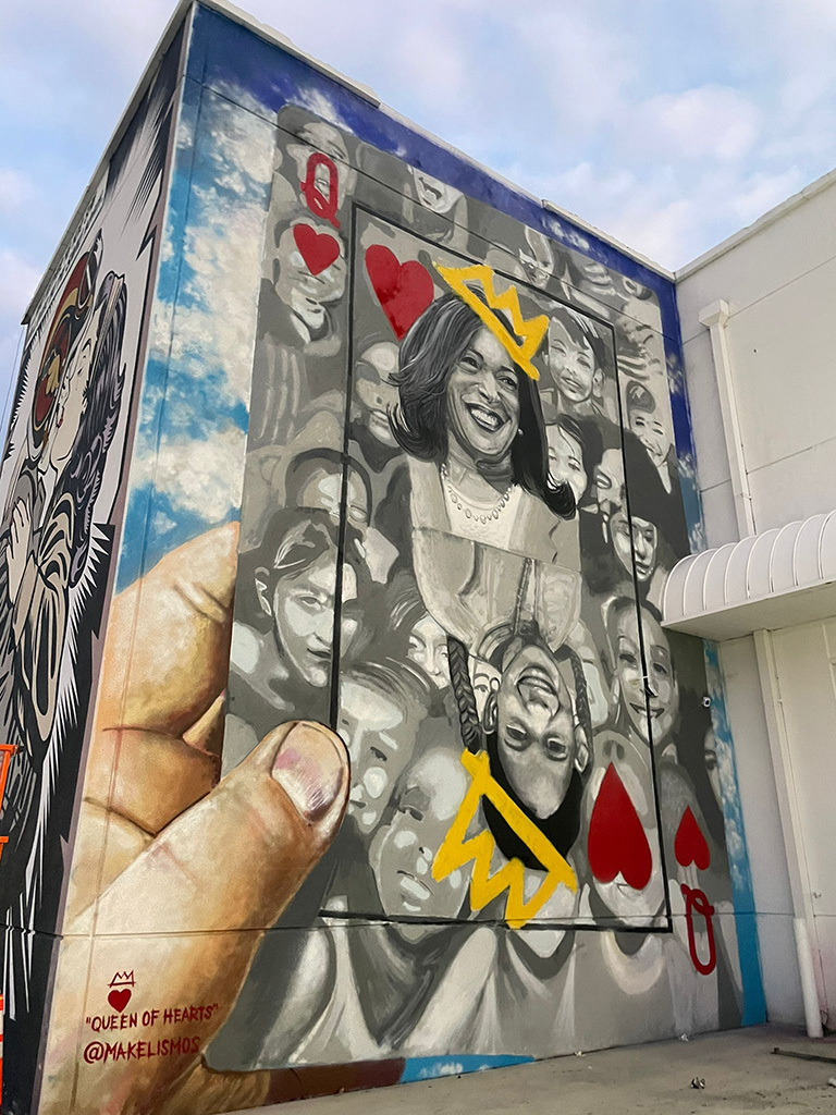 Un mural de René Mäkelä en Miami retrata a Kamala Harris como la nueva 'Reina de Corazones'