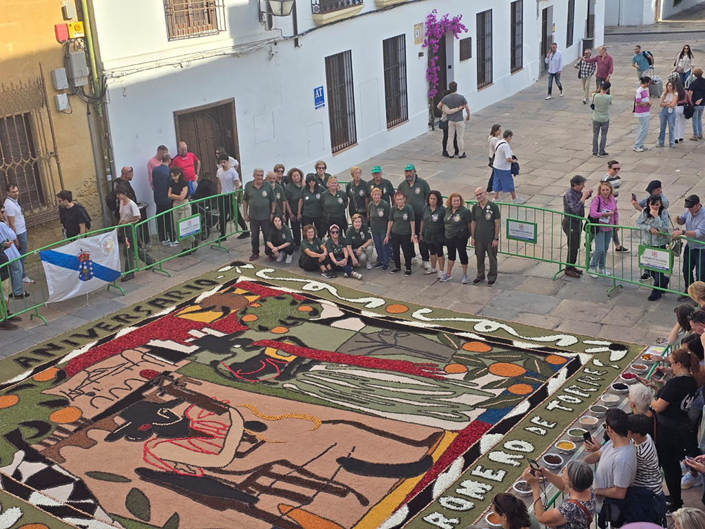 La ciudad de Córdoba se vistió de gala con una explosión de color y tradición. La Plaza del Potro se transformó en un lienzo vivo donde los alfombristas de Ponteareas plasmaron su arte, rindiendo un emotivo homenaje a Julio Romero de Torres. Con motivo del 150 aniversario del nacimiento del célebre pintor cordobés, la ciudad acogió una creación floral única que dejó a todos los presentes maravillados.