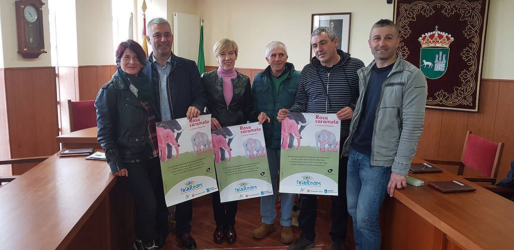 A peza teatral de dinamización lingüística Rosa caramelo e outras historias prosegue a súa xira no programa FalaRedes 2019 da Xunta de Galicia por 15 localidades da Rede de Dinamización Lingüística (RDL) e chega esta fin de semana ao concello coruñés de Trazo, que acollerá unha función no seu Centro Social Polivalente, o sábado 16, ás 12.00 horas. Así o deron a coñecer hoxe pola mañá o secretario xeral de Política Lingüística, Valentín García, e a alcaldesa, Josefina Suárez, acompañados por Artur Trillo, responsable de Talía Teatro.