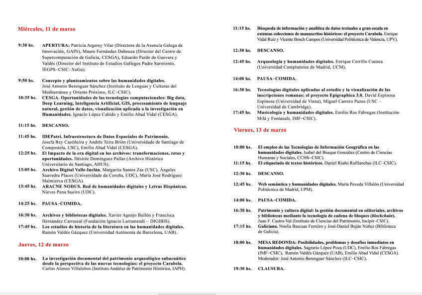 humanidades digitales'. Están organizadas por el Instituto de Estudios Gallegos Padre Sarmiento, centro mixto del Consejo Superior de Investigaciones Científicas (CSIC) y de la Xunta de Galicia,