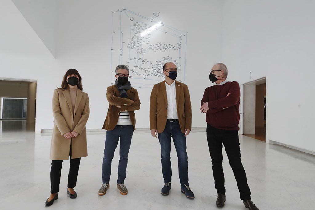 O secretario xeral de Cultura referiuse tamén á dimensión política do traballo, baseada na interrogación do espectador. “A idea do uso político da arte, que subxace en toda a exposición, magnifícase no pavillón errante, a grande instalación coa que o artista invade o dobre espazo do CGAC e recrea os mastros da fachada do Pavillón da República Española na Exposición Universal de París de 1937”, apuntou.